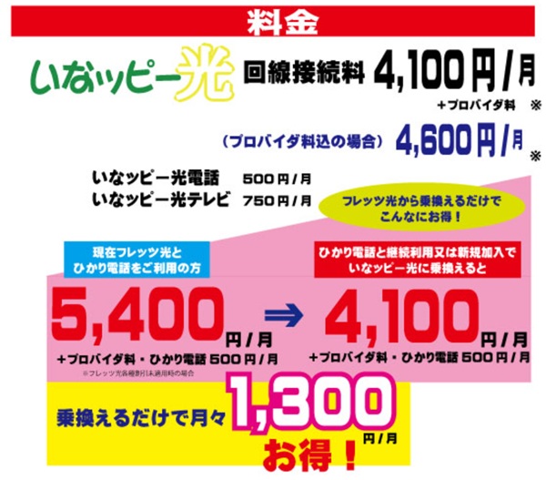 | 取扱うインターネット (赤字は特設サイトあり) | いなッピー光 ▼詳しく見る▼ | |||
